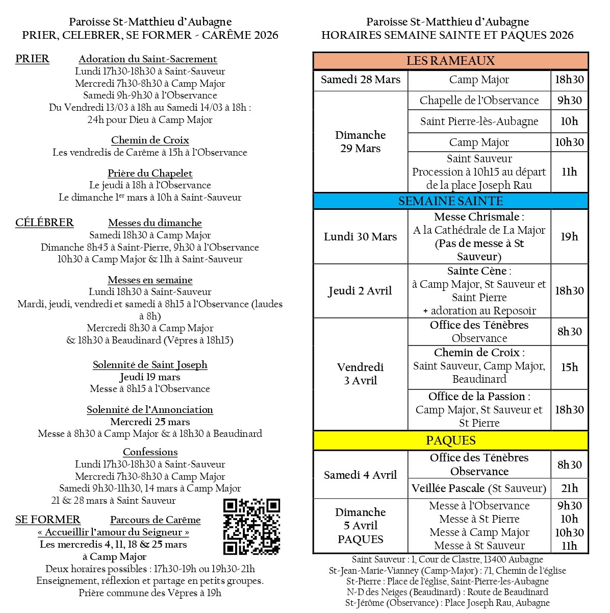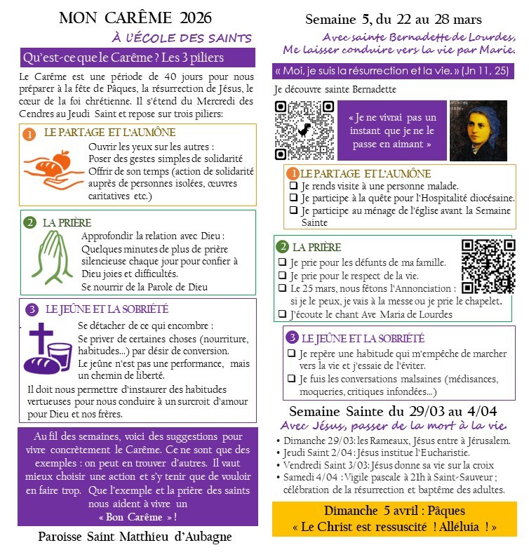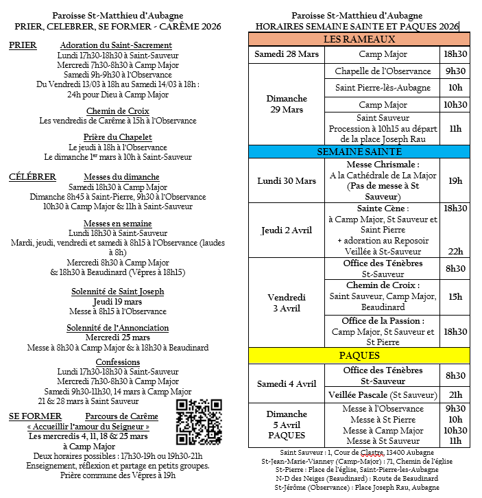 Propositions et Horaires du Carême et de la Semaine Sainte